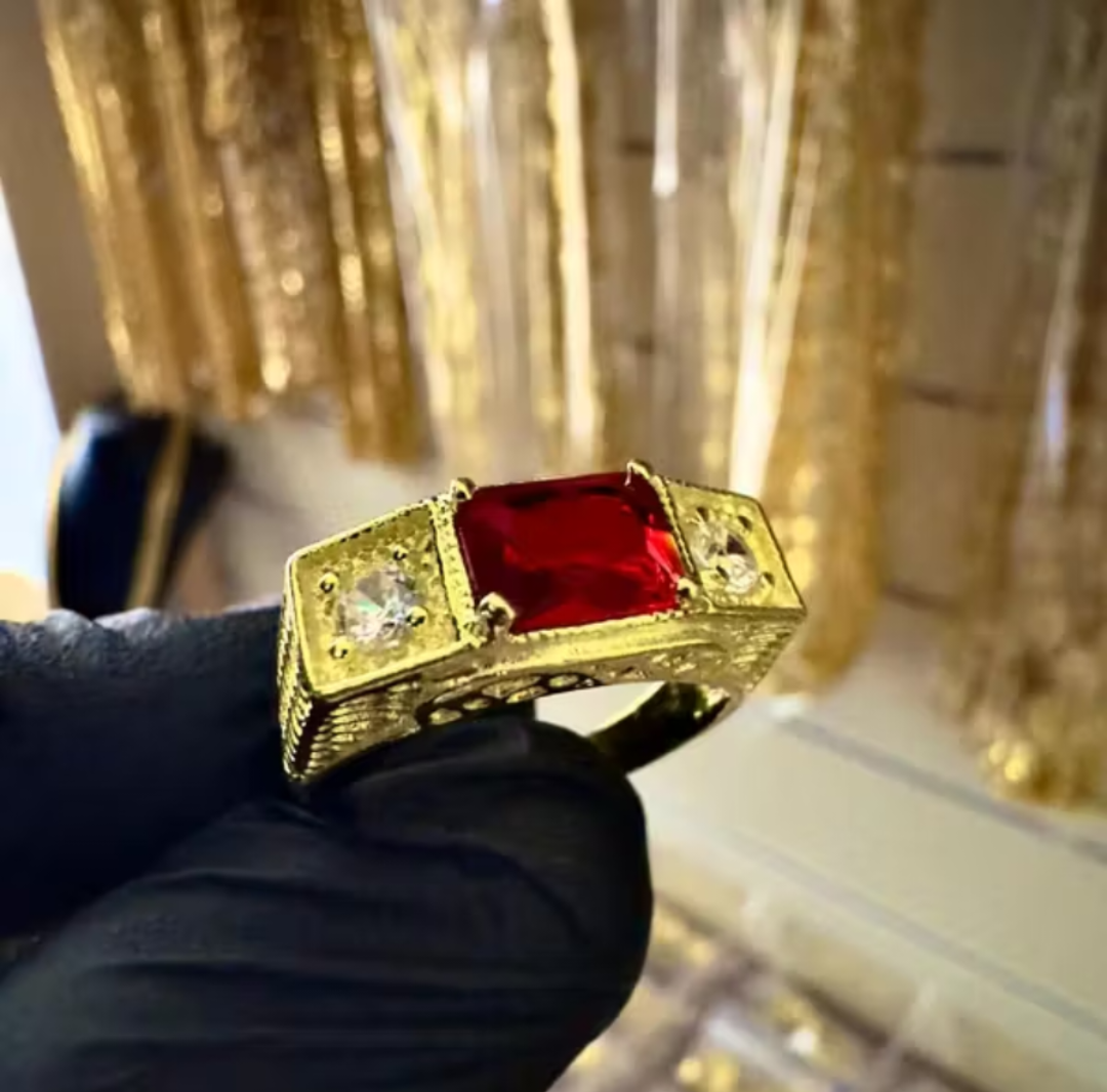❤️ ANEL DE FORMATURA COM PEDRA VERMELHA – AJUSTÁVEL