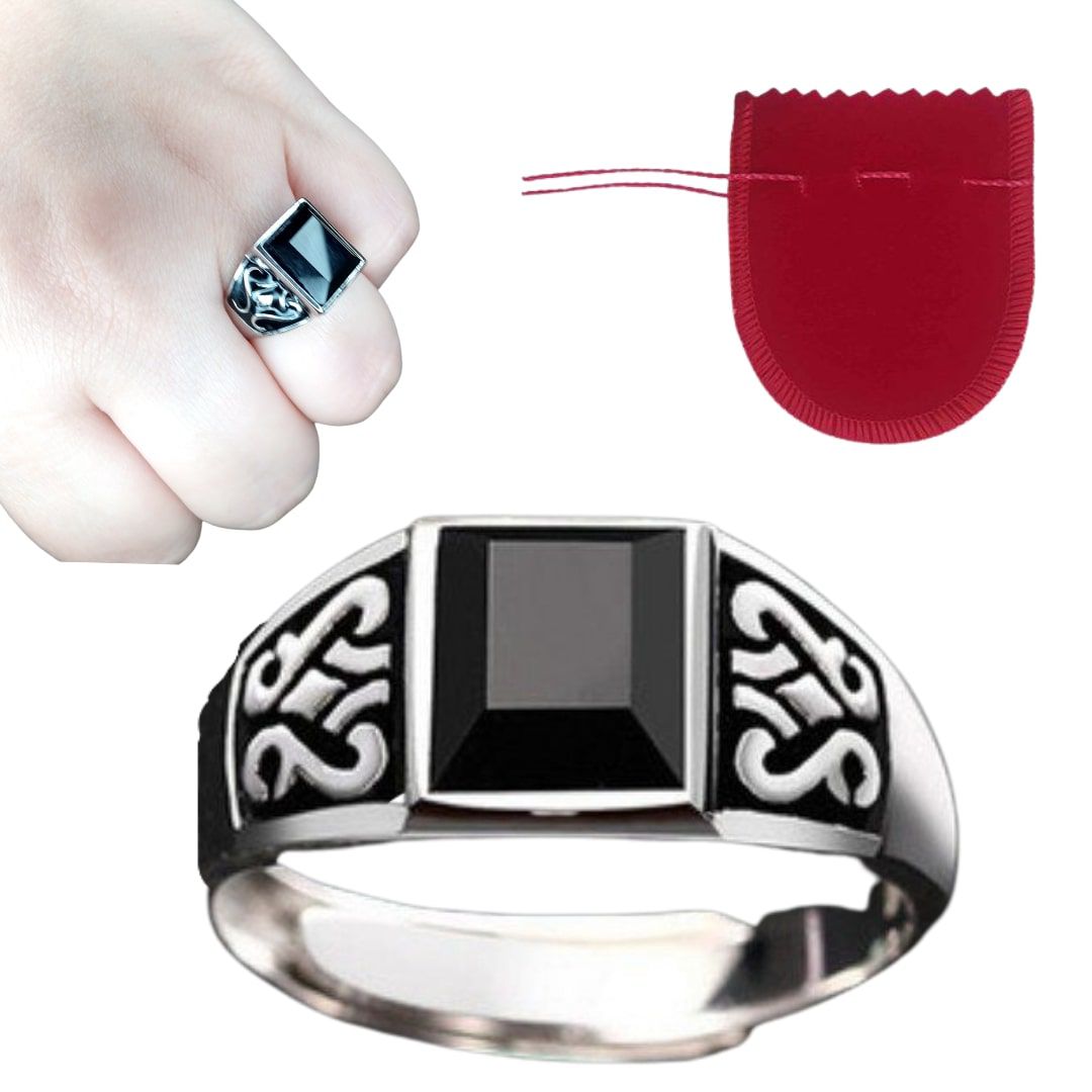 Anel Pedra Preta Trabalhado Ajustável Ônix Fusion